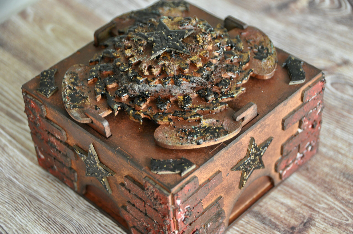 This product is made from MDF wood and comes raw and unassembled. Photos are for illustrations purposes only.