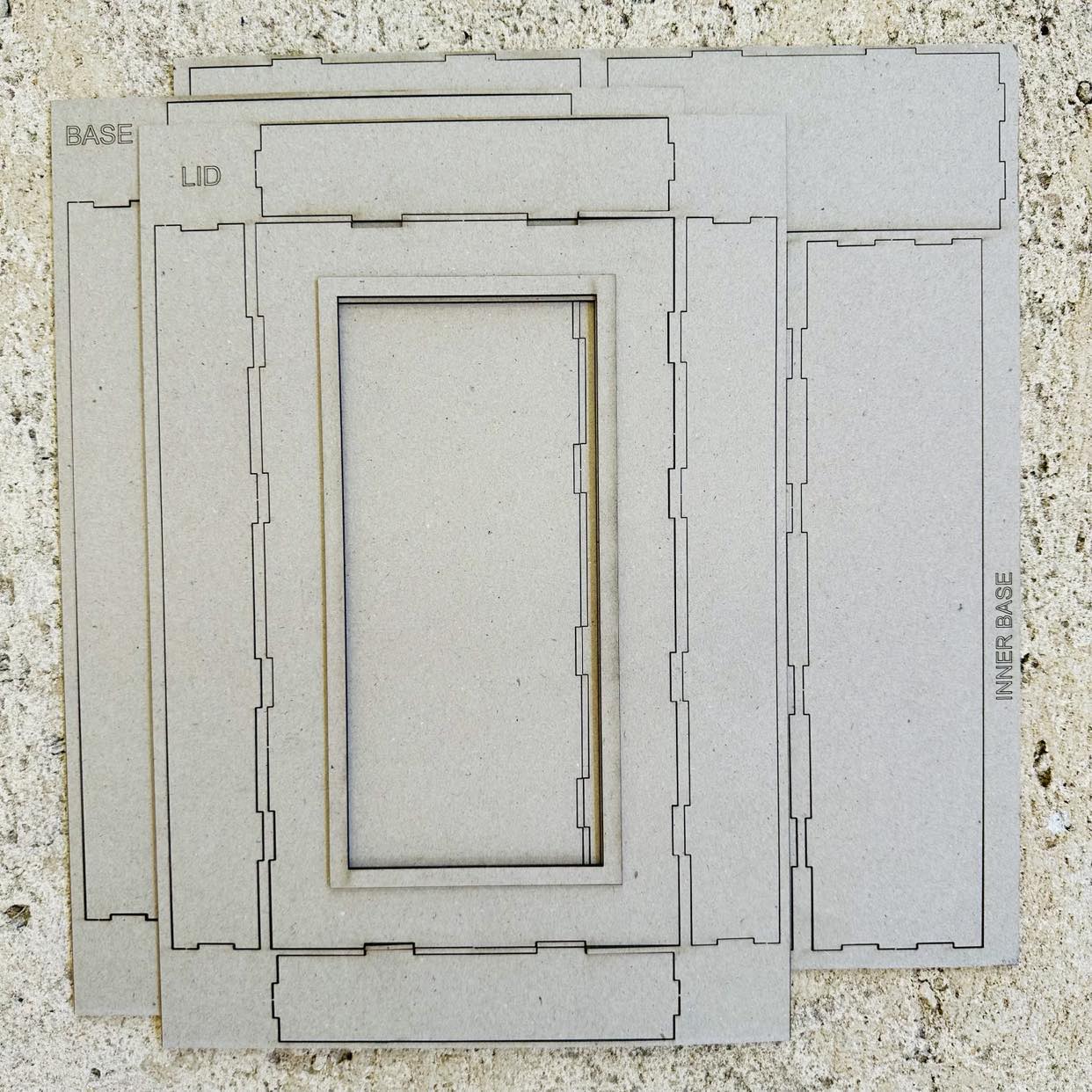 All product comes raw. Contains 1 Base, 1 Box Base, 1 Lid, 1 Box Frame and needs to be assembled.