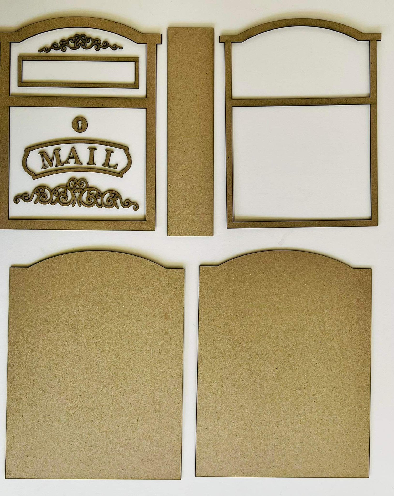 All product comes raw and cut from chipboard. Contains 2 chipboard album covers, 1 spine and extra layers for front door layering. Assembly Required.