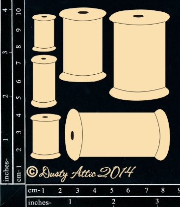 Set of 6 reels.Designs range from 1.5cm to 6cmCut from 1.8mm chipboard
