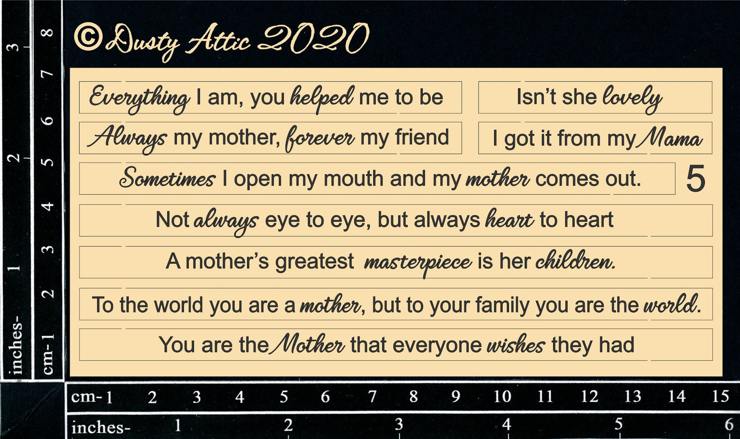 Title only. Cut from 1.8mm raw chipboard.