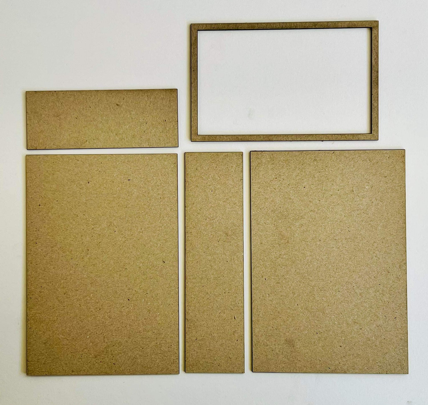 All product comes raw and cut from chipboard. Contains 2 chipboard album covers, 2 spines (1 for portrait and one for landscape) and one separate album frame for layering. Assembly Required.